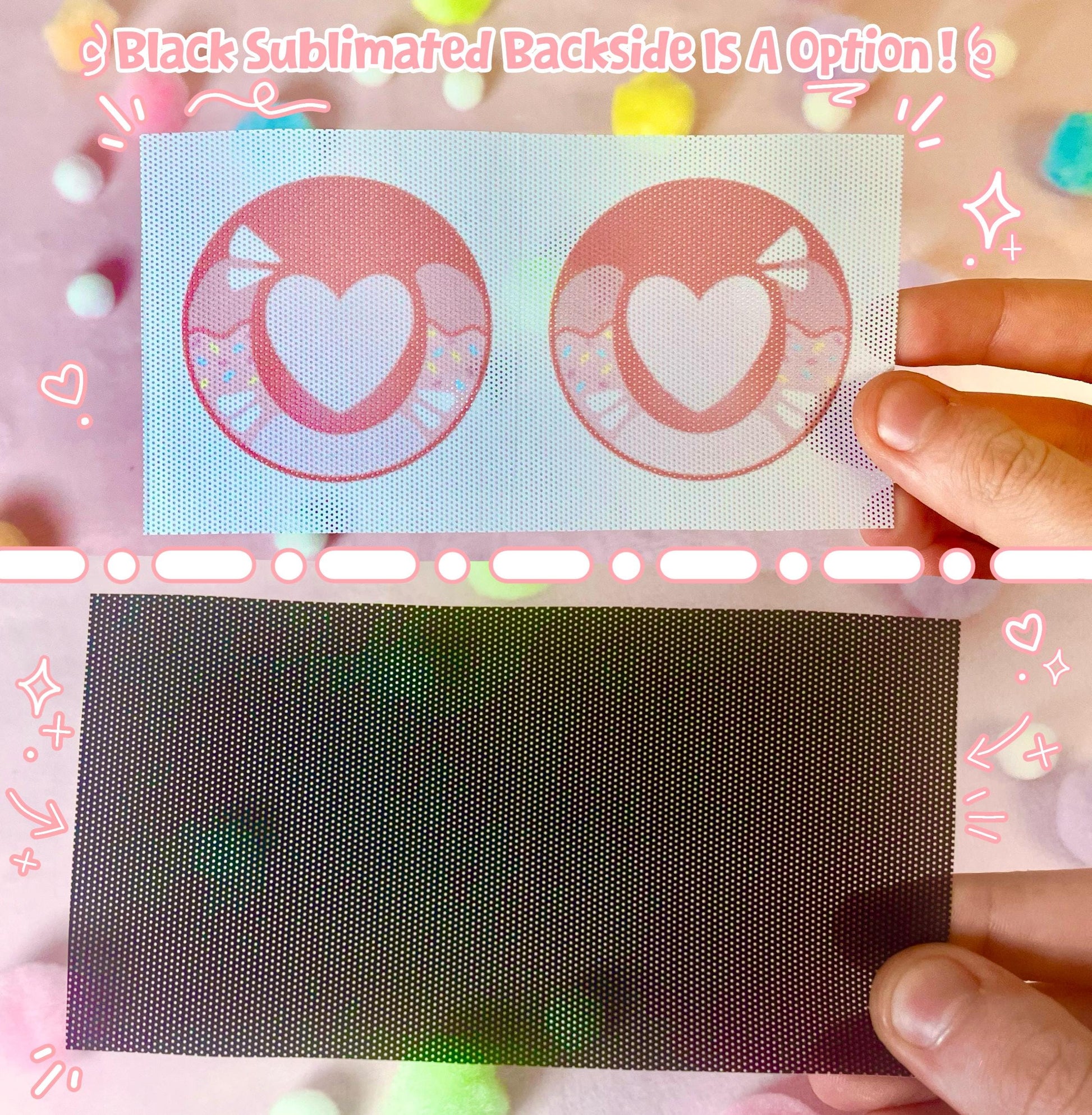 ♡ You Can Choose Between a Sublimated Black Backside Or None!! Black Backsides allow for better vision and reduce glare, But May Dull colors when It comes to .8mm Mesh :( !